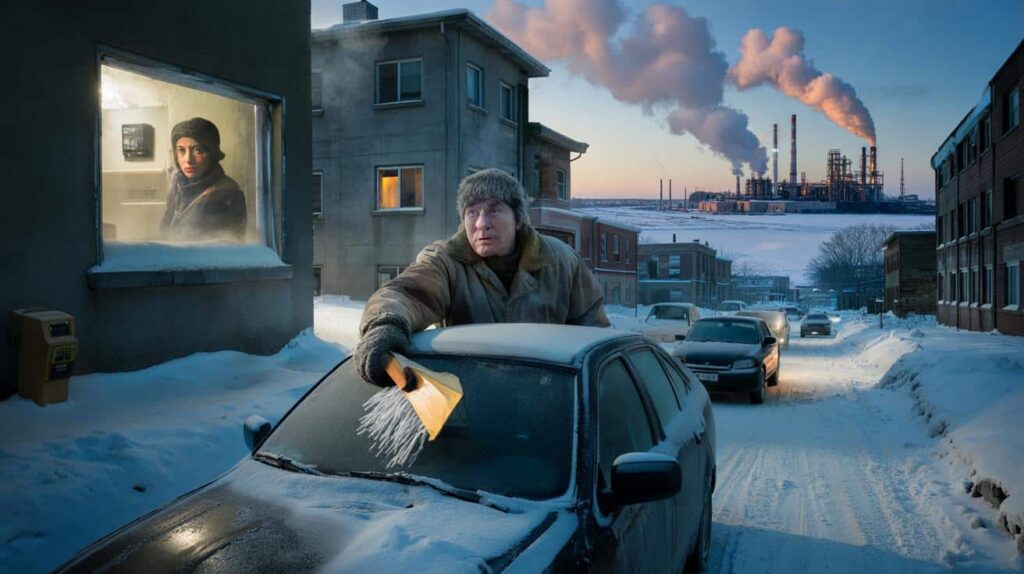 Outside, the street looked like a frozen screenshot. Cars half-buried. Breath turning into tiny clouds. A delivery driver scraped ice from his windshield with an old loyalty card, fingers bare, because he’d lost one glove last week and payday was still far away.