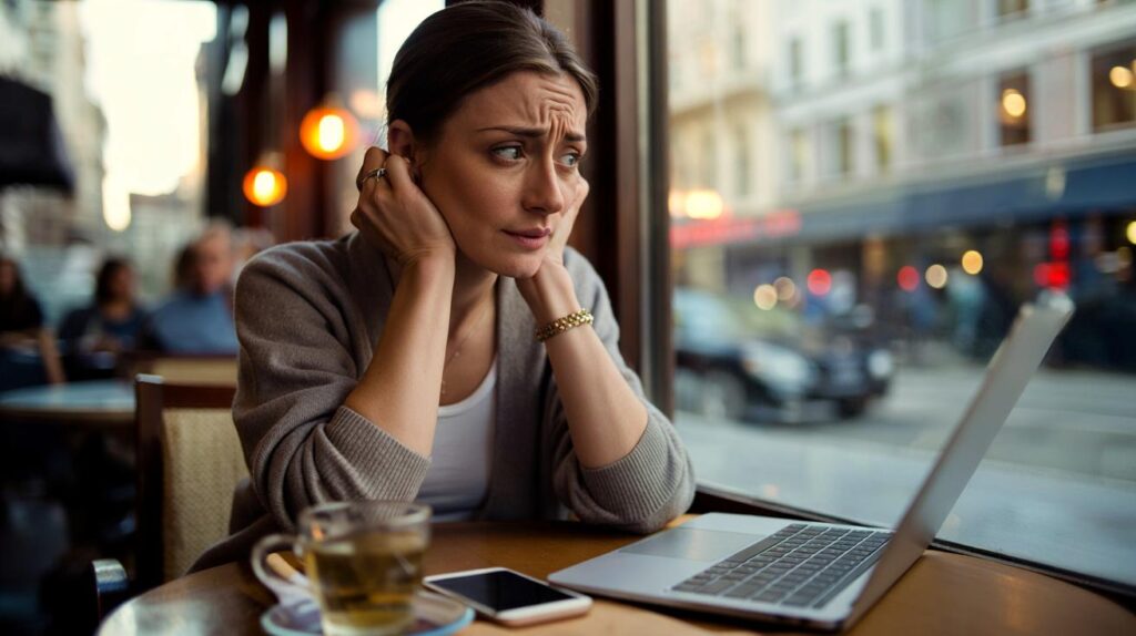 The woman in front of me at the café keeps rolling her shoulders. Every few seconds, she lifts them towards her ears, lets them drop, then presses her fingers into the back of her neck as if trying to erase something buried there. Her laptop is open, emails flashing, but her eyes are somewhere else. You can almost feel the knot between her shoulder blades from across the room.