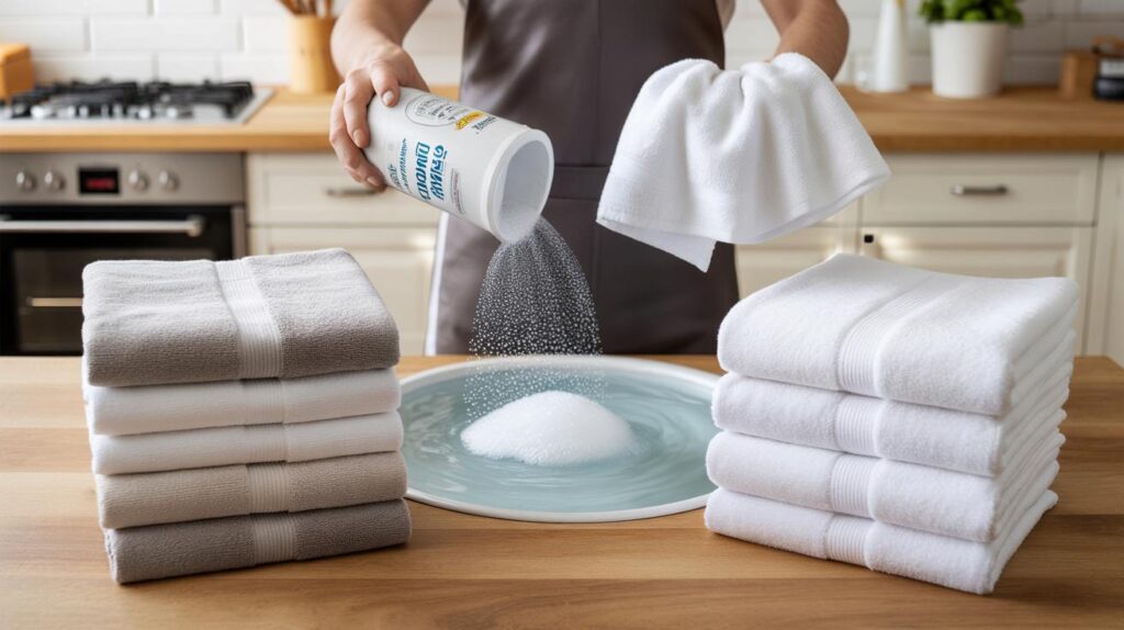 | Deep cleaning, not just washing | Use hot soaks with oxygen bleach and a little dish soap to strip grease and residue | Restores real whiteness and freshness to dull, grey towels |