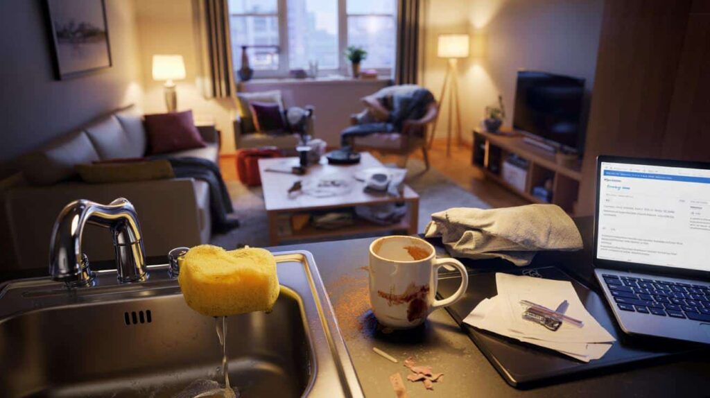 By Friday night I came back to a hallway that smelled faintly of laundry that hadn’t fully dried, a chair drowning in clothes, and a bathroom sink speckled with toothpaste fossils. The plants drooped like they were disappointed in me personally.