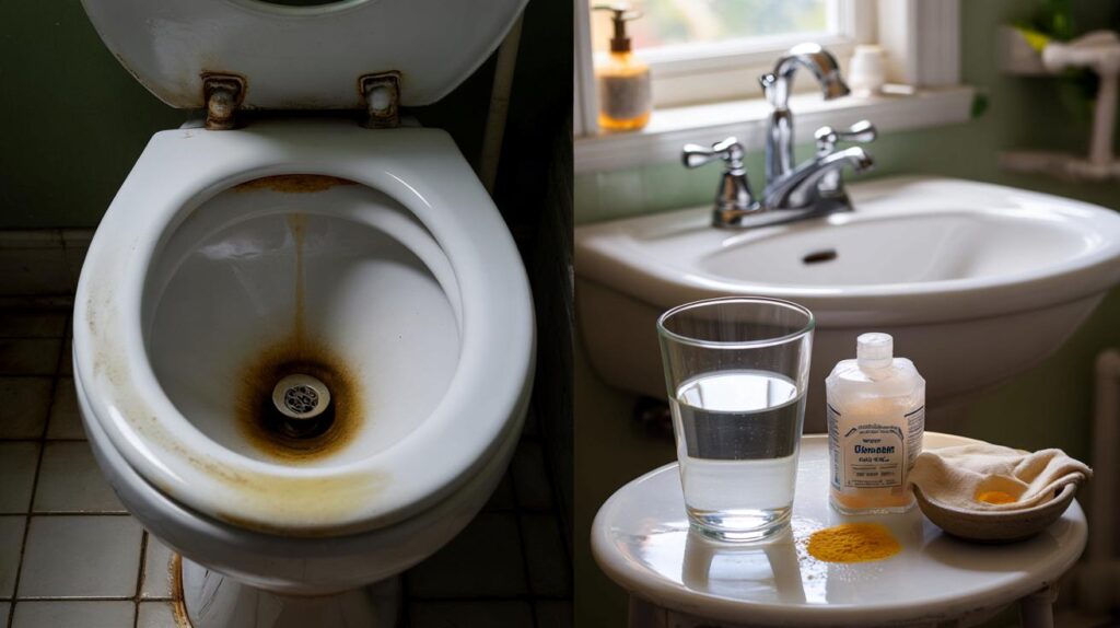 You move into an apartment from the 80s. The bathroom has that off-white toilet, slightly beige, slightly sad. The previous tenants swore they “cleaned before leaving”, yet there’s a chalky band around the water line and rusty streaks under the rim.