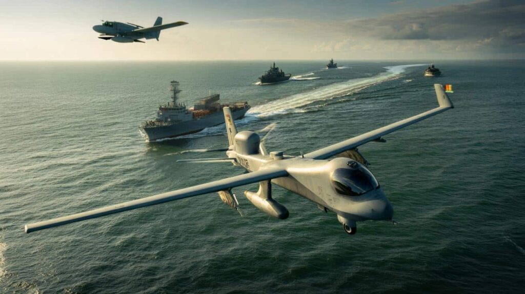 In practice, the drone can patrol sea lanes used by tankers, LNG carriers and military convoys, then cue other assets when something suspicious appears under or on the water.