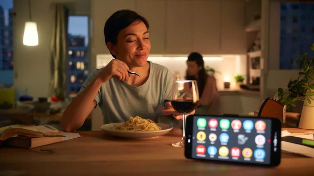 Email tabs open, fitness app buzzing, a half-read productivity thread on X still glowing on the screen. Liam stares at his phone, then quietly locks it, slides it across the table and goes back to his pasta. No tracking, no “10 hacks to supercharge your week”, no timer running in the background. Just a plate, a glass of red, his flatmate talking about nothing in particular.