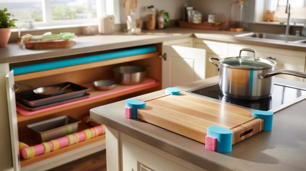 Suddenly, things land softly instead of banging. Knives stop crashing together. And that heavy cutting board? It stays put like it’s nailed down.