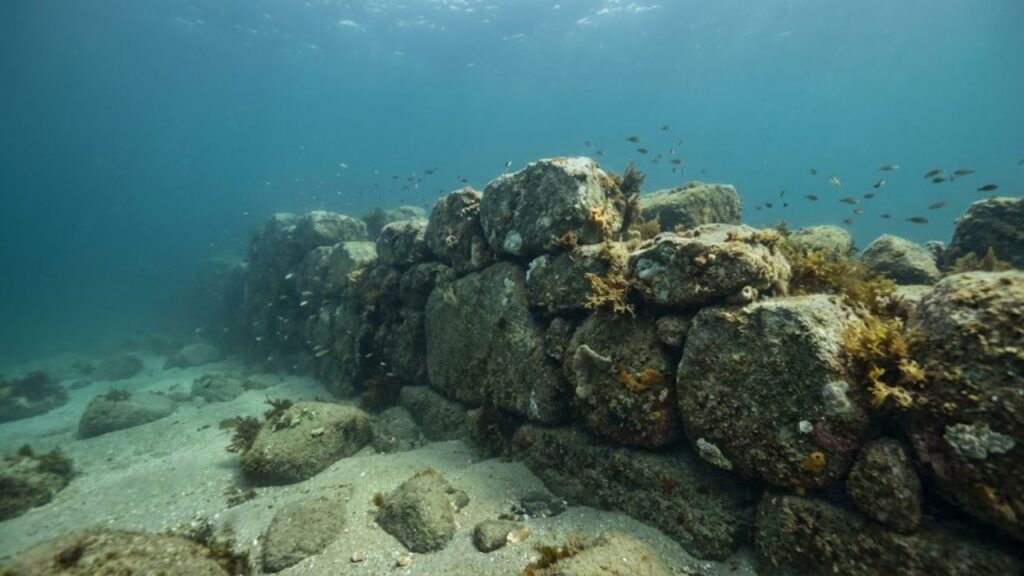 When viewed from above using sonar and aerial imagery, the structure appears as a thin, straight line — far too organized to be a natural formation. On the ocean floor, missing stones hint at the ravages of age and erosion, but the intention behind the wall remains clear. Each rock was purposefully placed, not randomly scattered.